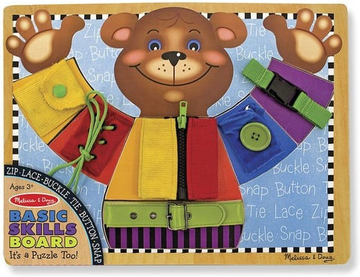 This wooden bear is always smiling, but he’s happiest when fully dressed! Getting dressed won’t be such a puzzle once zipping, buckling, snapping, lacing and tying, and other dressing skills are mastered. Each skill is contained on a separate, removable wooden puzzle piece for easy practice. Develop fine motor and life skills with this great activity.