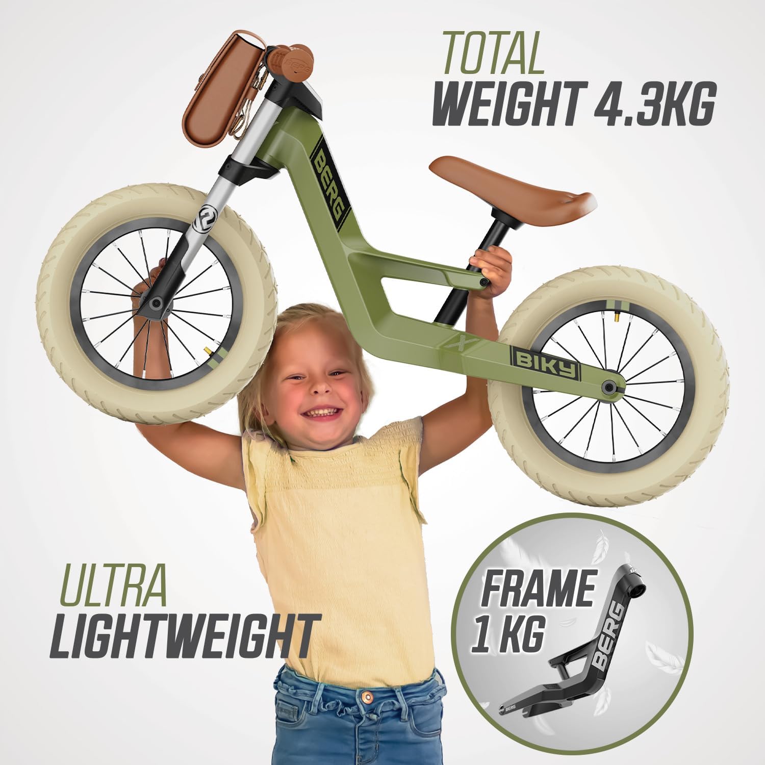 Lightweight Design: By applying the latest production techniques and using lightweight magnesium, BERG has developed a particularly sturdy and lightweight frame for the Biky Retro.