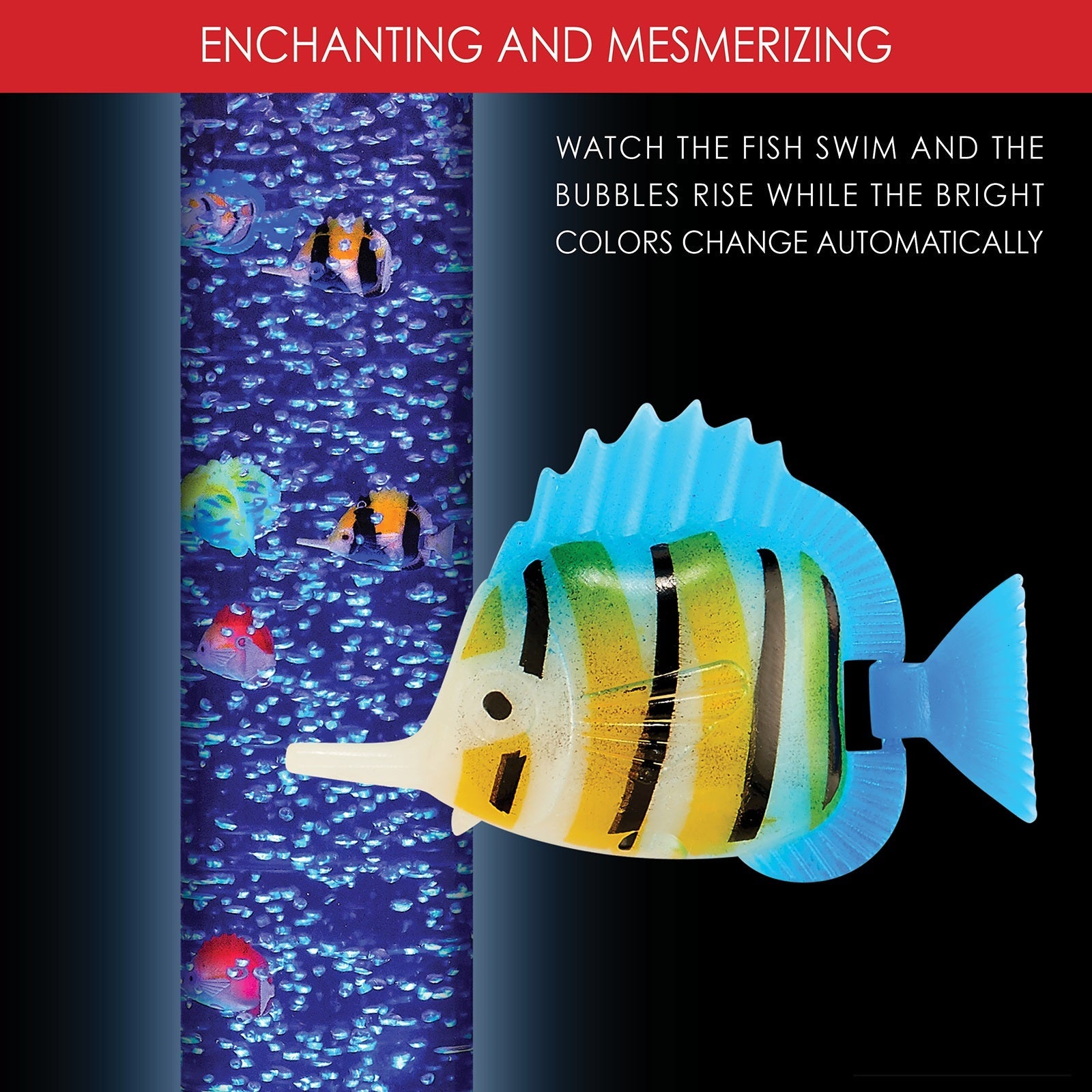 Colour change lighting, bubbles, and swimming fish makes it ideal for any classroom or sensory zone. Suitable to place on a floor. Special pack comes with fish. Whether it is in a calming room or an interactive room, the array of changing colours and moving bubbles gets everyone attracted to its relaxing effects. Be mesmerised by the fish and. Popular for those with Sensory Processing Disorder (SPD).