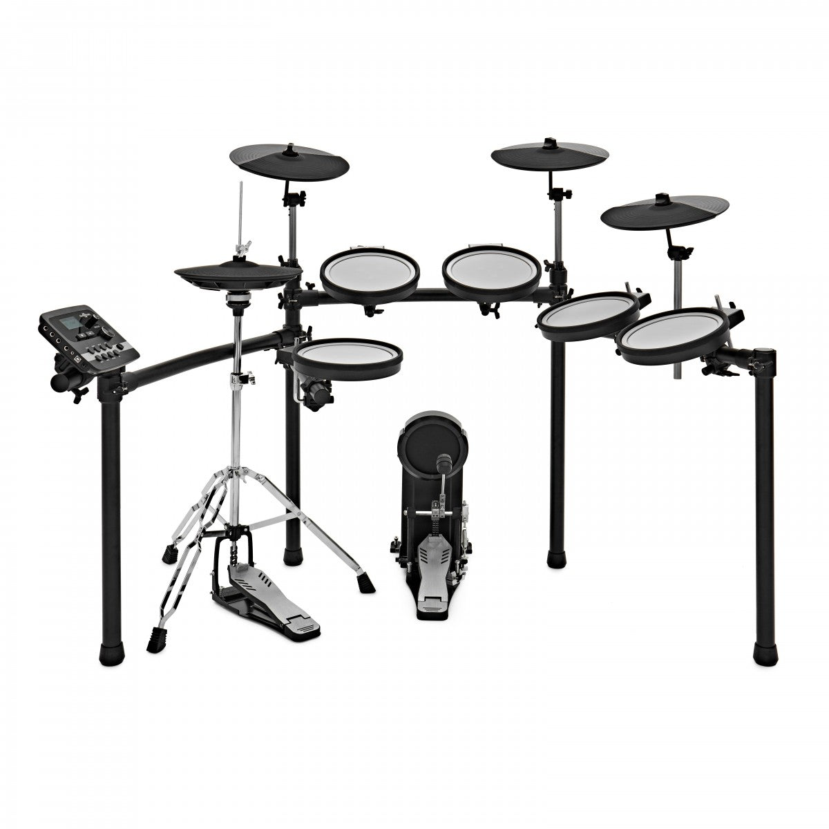 - Includes power supply, drum key, kick pedal and hi hat stand