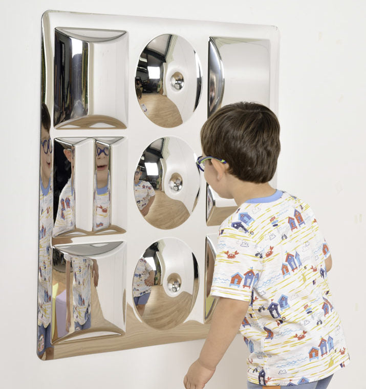 Summary: Indoor or Outdoor use. Impact resistant, drop-proof, sensory mirror with waves & bubbles for multiple image bending fun-filled reflections. Best mounted on the wall but can be used flat on the floor (do not bend) with teacher/therapist/adult supervision