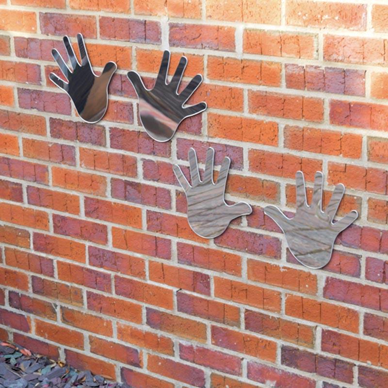 2 pairs of plastic mirror hands for permanent wall mounting either indoors or out. Ideal Now Wash Your Hands reminders in the toilets or alternatively just as a corridor or classroom wall decoration. Comprises (with sizes): 2 x left hands and 2 x right hands each approx 250mm x 250mm. Supplied with double sided adhesive pads. Additional wall fixings may be required e.g. No More Nails adhesive for wet areas.