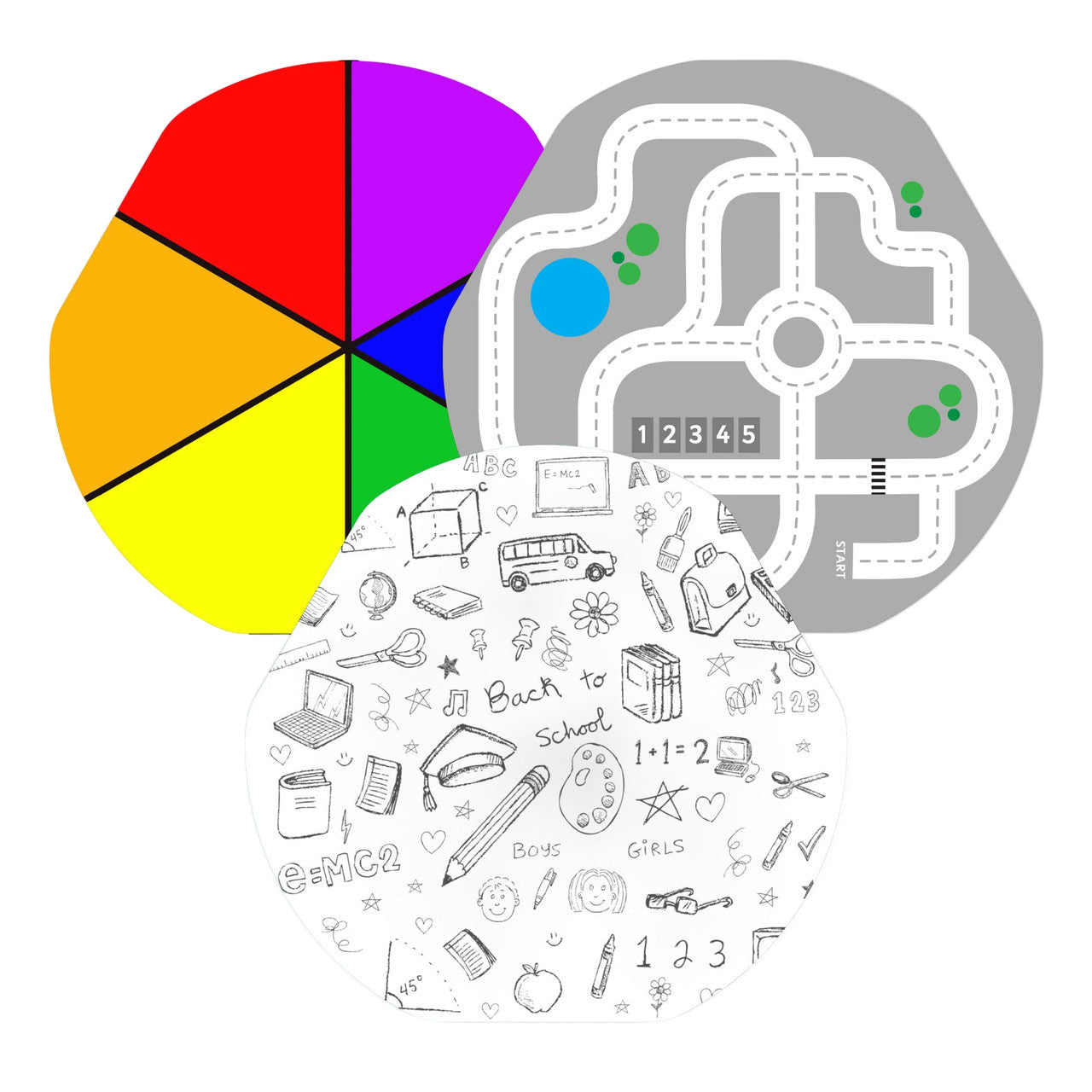 Variety of themes: Choose from grass, chalkboard, mirror, dry wipe, road safety, and colour sorting designs.