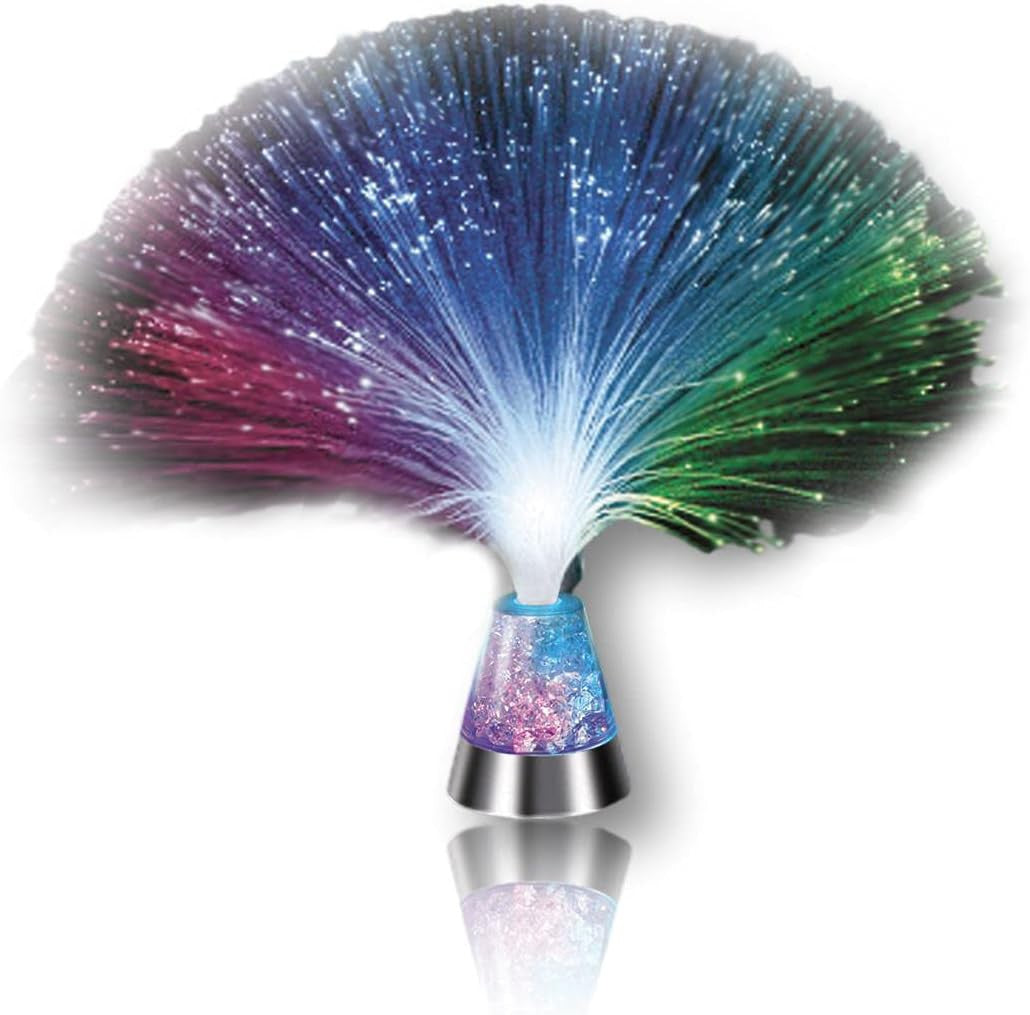 Enchanting azure beams pass through the nylon fronds to fashion an environ of minuscule stars that'll float around delicately with a slight gust. The base comprises a variety of diaphanous crystal-like pieces that reflect a heartbeat of varying light to go with the optical fibre effect atop. Requires 3 x AA batteries Measures 33cm