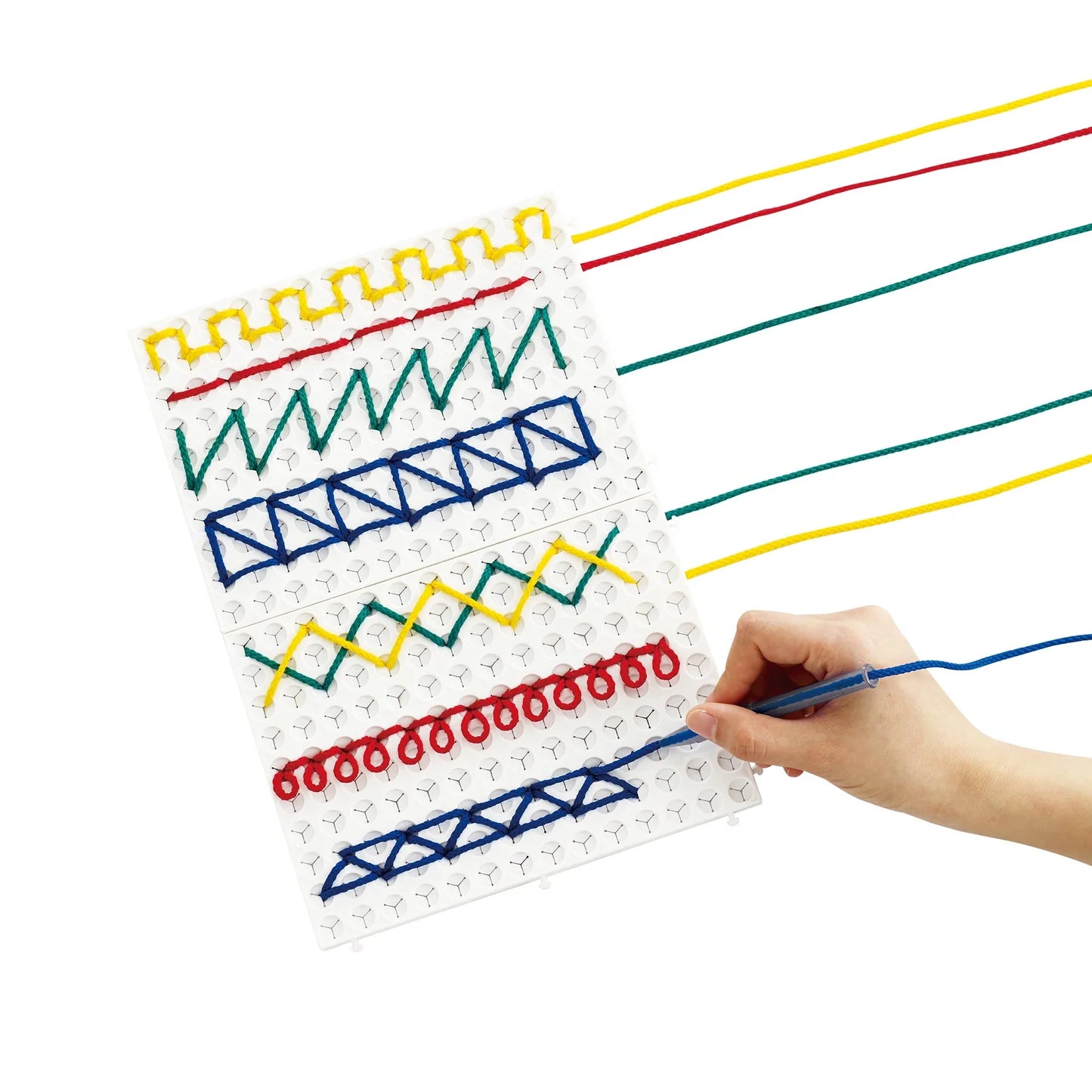 Included in Set:– 8 baseboards (connectable)– 32 laces in 4 colours– 8 string pens– 12 double-sided activity cards