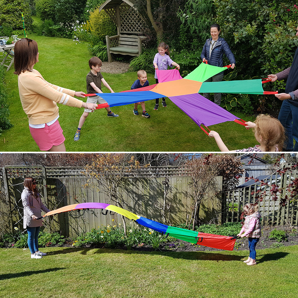 The junior sunflower shaped parachute is perfect for coordination and team building skills. Develops children’s competence and confidence to coordinate objects and to communicate, collaborate and compete with others. Ideal for nurseries, smaller groups and families.