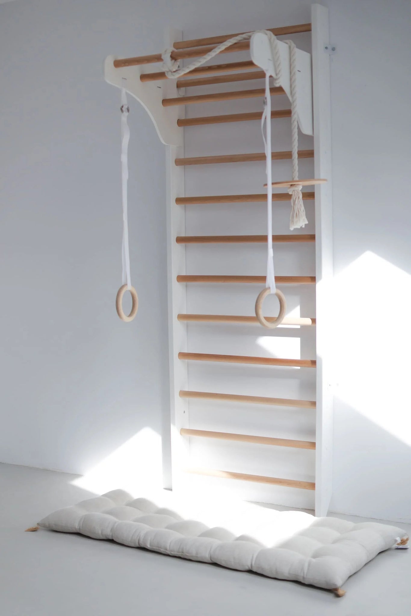 Experience the Kinder Wood Exercise Ladder – a gymnastics set designed to ignite the passion for active play and foster all-round development in children and adults alike. Crafted from eco-friendly pine wood, this set not only promotes physical fitness but also blends seamlessly into any room décor.