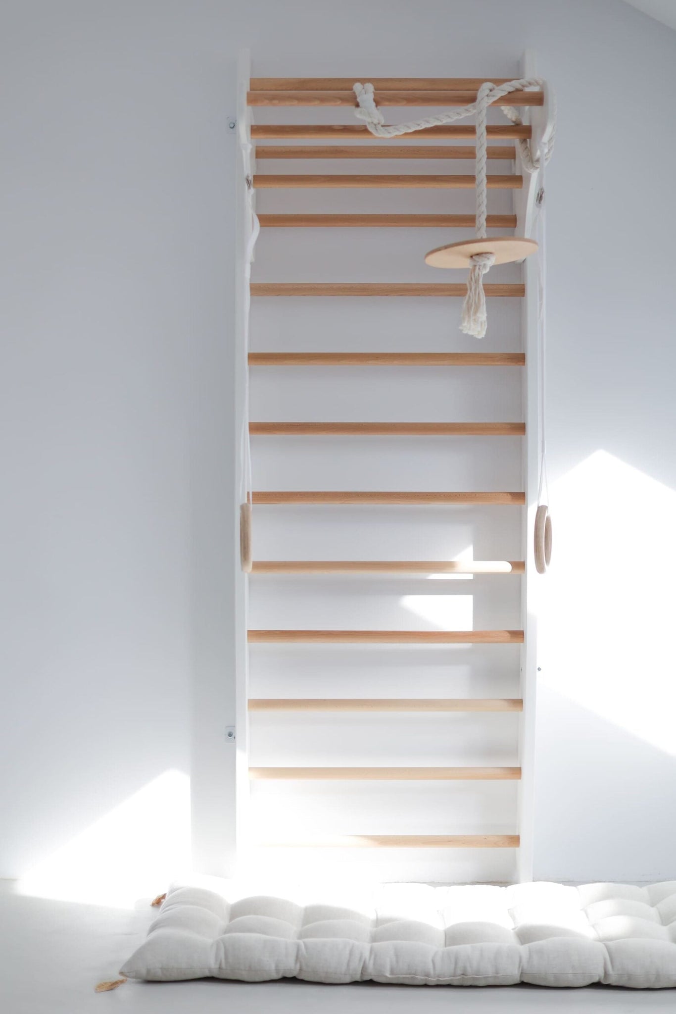 Experience the Joy of Active Play: Transform any space into a dynamic workout area with the Kinder Wood Exercise Ladder. Whether mounted in a bedroom, playroom, or recreational area, this set encourages physical activity, imagination, and endless fun for the whole family.