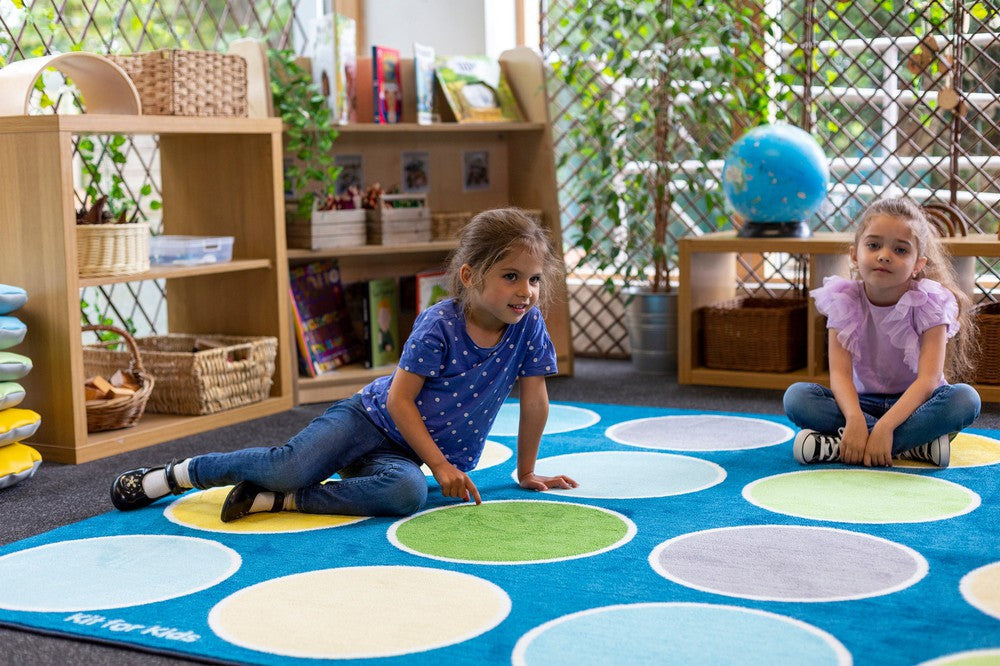 Dimensions: Transform your learning space with this 3x2m Lake Circles Rectangular Placement Carpet, designed to create a calming and engaging environment for students.