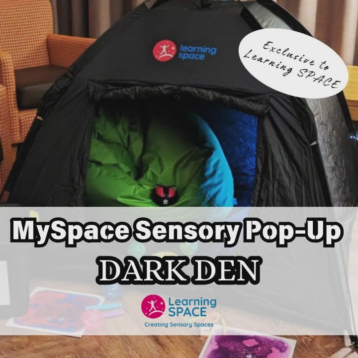 Introducing our exclusive MySpace Sensory Pop-Up Dark Den, available only at Learning SPACE. This innovative blackout den pops up or folds away in seconds, providing children with a safe and quiet space to explore and unwind. Teachers and parents love its portability, allowing its use wherever and whenever needed. The den comes with a convenient storage bag for easy transportation.Our unique design includes safety features such as a hole for plug access, blackout flap, covered latches and hinges, and a knotted cord for extra safety. CE marked for quality assurance. Sized at 150cm x 150cm, it's perfect for classrooms or homes, creating a versatile sensory space for children.
