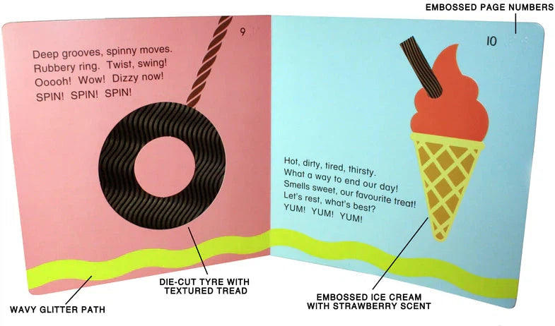 Containing tactile features, Braille-style numbering, play elements, high-contrast images and a rhythmic rhyming text, this book is designed to create as sensory and involved experience as possible out of a familiar and well-loved journey.