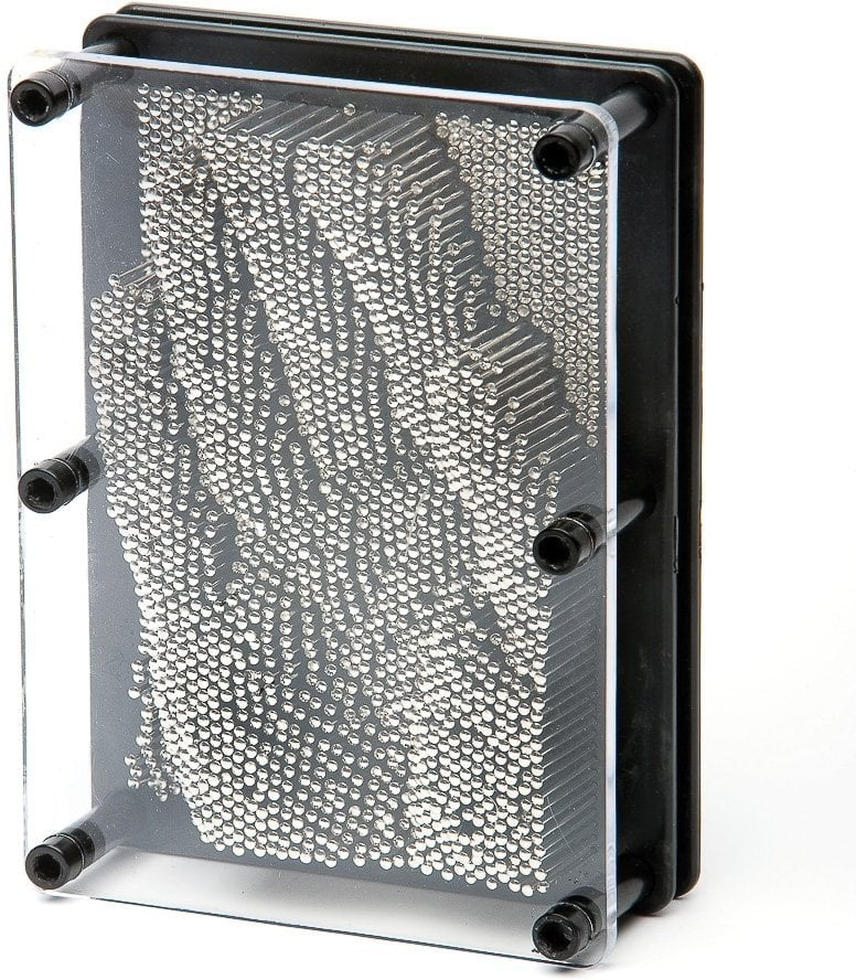 Turn anything into art with this classic Pin Art toy from the 80s! Perfect for desktop fun, this retro executive toy lets you create endless 3D impressions. Whether it's your hand, face, or any other object, gently press down on the thousands of metal pins, and watch as it transforms into a perfect 3D replica behind the Perspex panel. A brilliant novelty for the office, home, or as a conversation starter!