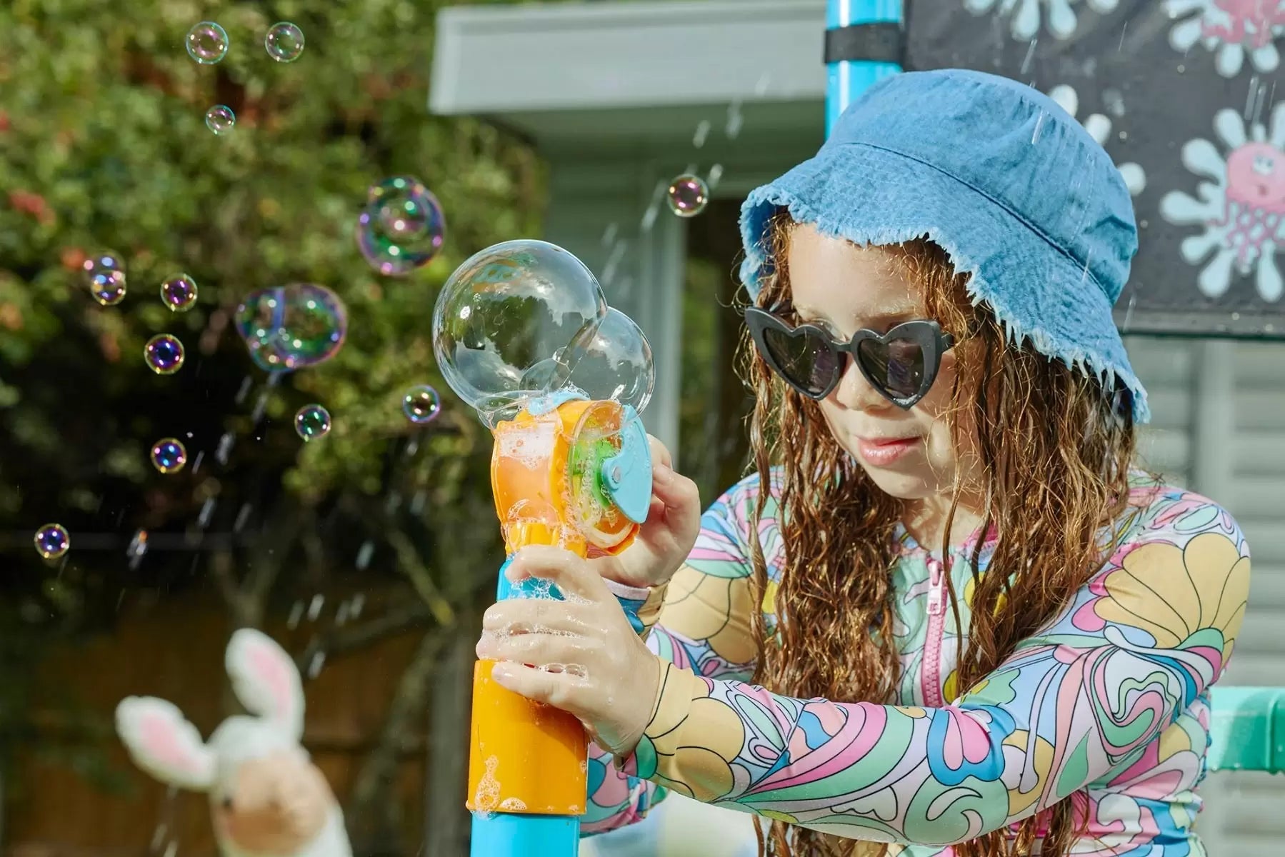Exciting Water Accessories: Includes a water blaster, 3-arm sprinkler, 8-pattern sprinkler, and bubble blower—perfect for sensory play and cooling down in the heat.