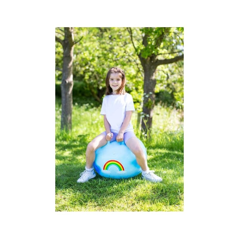 This 60cm bouncy ride-on toy has a sky blue design with cloudy details right across it and the front features a big and bright rainbow decal. It's a childhood classic that is still loved by adults and children alike.