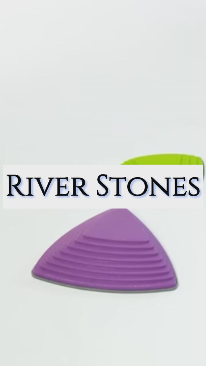 The River Stones are inspired by stepping stones in a river with each side of the triangle varying in steepness and difficulty.The purpose is to jump from stone to stone without touching the floor. You can vary the position of the stones to create more challenging paths for children.