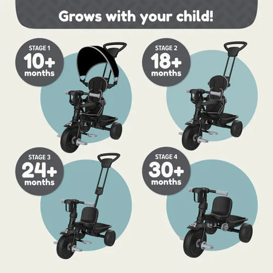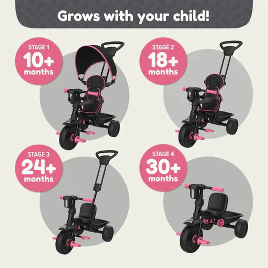 4-in-1 Growing Fun: Designed for 4 key stages of your child's development – from guided strolling at 10 months to independent riding at 30+ months.