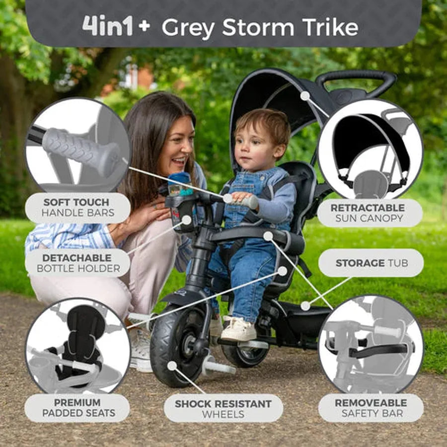 Say hello to the TP 4-in-1+ Deluxe Trike, the ultimate trike designed to adapt, support, and delight your child from 10 months to 30+ months. With a sleek design and luxurious extras, this trike has all the amazing features of the classic 4-in-1, plus added comfort, style, and storage. Whether you’re strolling through the park or cruising around the garden, this trike is ready for every family adventure – in elegant Pink Dust or cool Grey Storm.